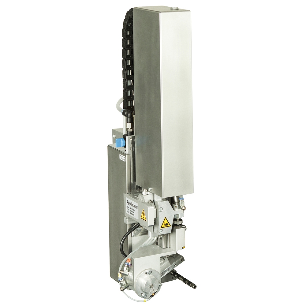Zum Etikettieren in Echtzeit an Innenflächen von Profilen und Rohren. Die genaue Position auf dem Produkt wird durch einen Anschlag am Hubzylinder eingestellt. Die Etikettierung kann von allen Seiten auf das Produkt vorgenommen werden.