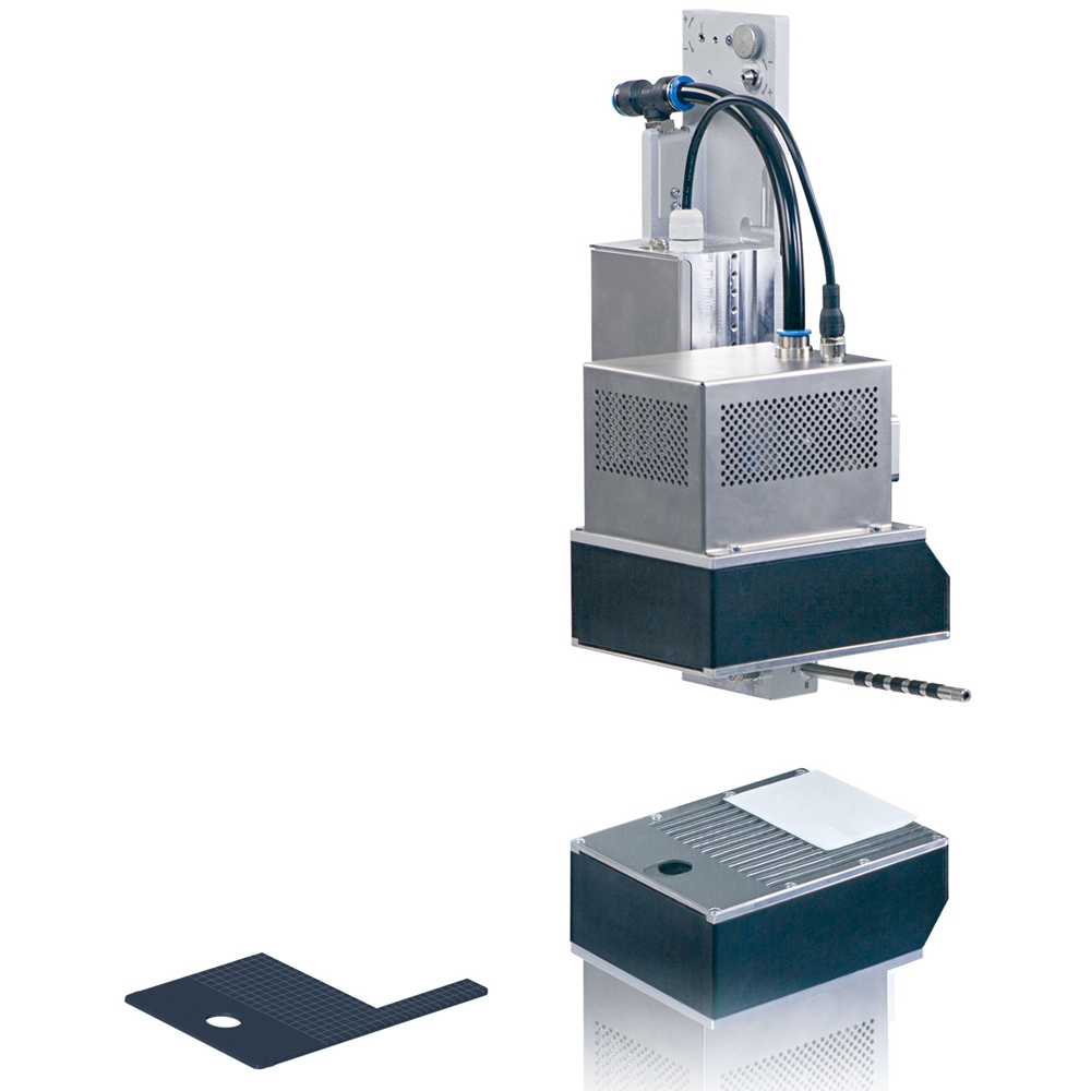 Etikettieren in Echtzeit vorzugsweise auf Verpackungen. Je nach Stempeltyp ist die Verpackung während des Etikettiervorgangs in Ruhe oder in Bewegung. Die Etikettierung kann von allen Seiten vorgenommen werden.